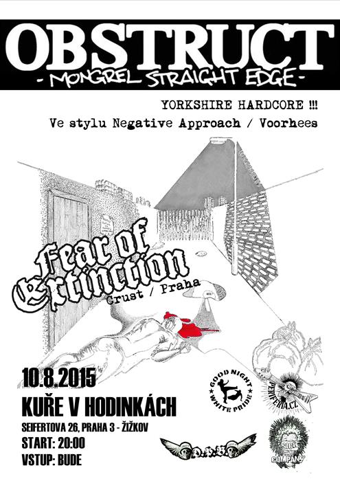Obstruct (UK) + Fear Of Extinction pondělí 10.8.2015 Praha, Kuře v hodinkách start: 20:00 vstup: bude