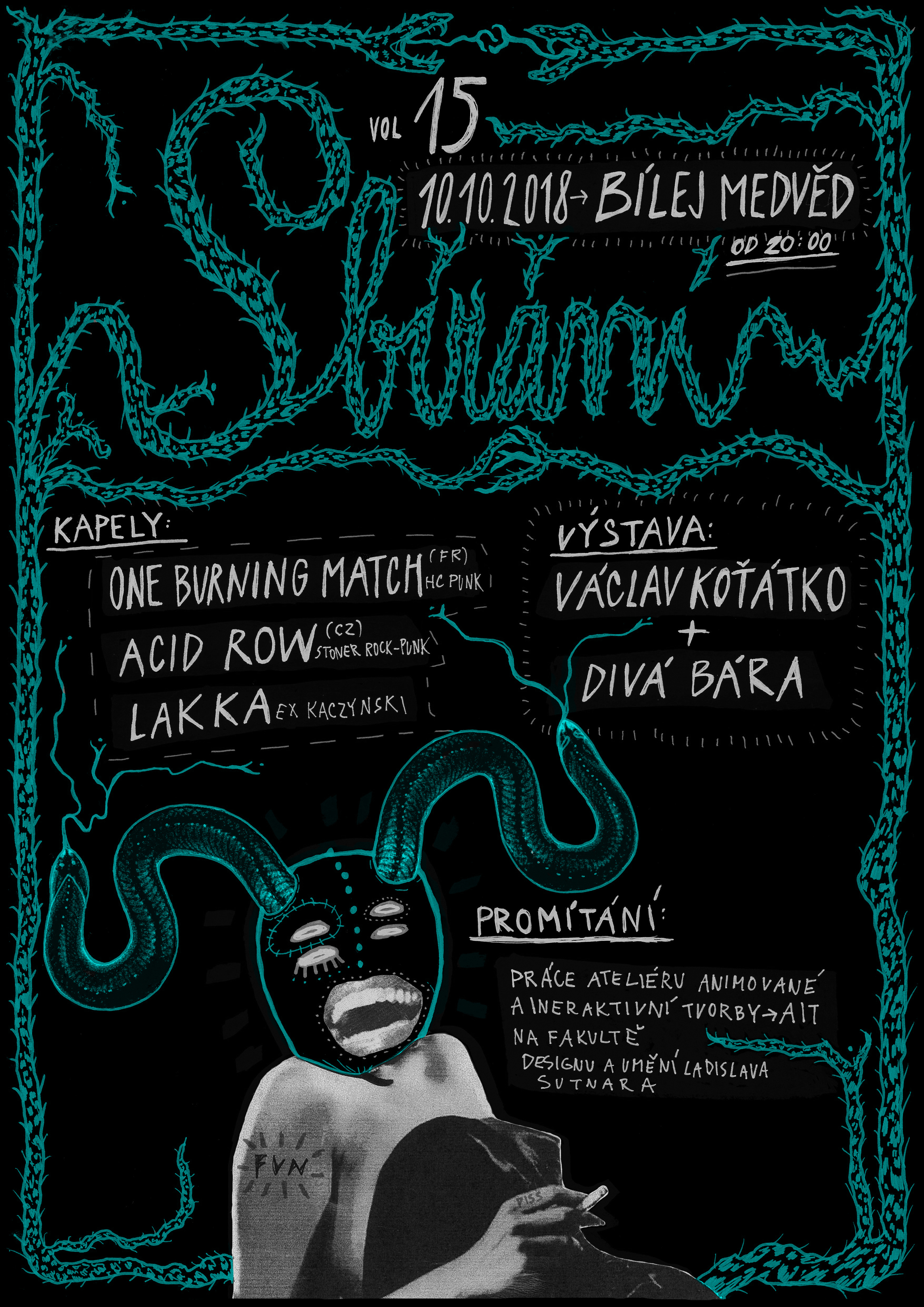 V rámci Sbírání proběhne vernisáž Divé Báry (která se už notnou dobu stará mimo jiné o vizuál kapely Acid Row) a Václava Koťátka.