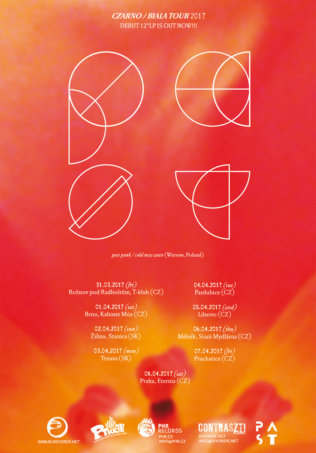 Debutní album polských PAST (Varšava) se jmenuje Czarno / Biala a vyšlo před pár dny v kooperaci Samuel Records (CZ), PHR Records (CZ), P.Trash (DE), Contraszt! rec. (DE) a PAST (PL) na 12"LP vinylu. Celou nahrávku si můžeš poslechnout na pastpunk.bandcamp.com a desku lze objednat ZDE. Atmosféru desky si můžeš přiblížit i video klipem ke skladbě Warszawa. V termínu 31.3. - 8.4. odehrají PAST několik CZ/SK koncertů, termíny najdeš ZDE.