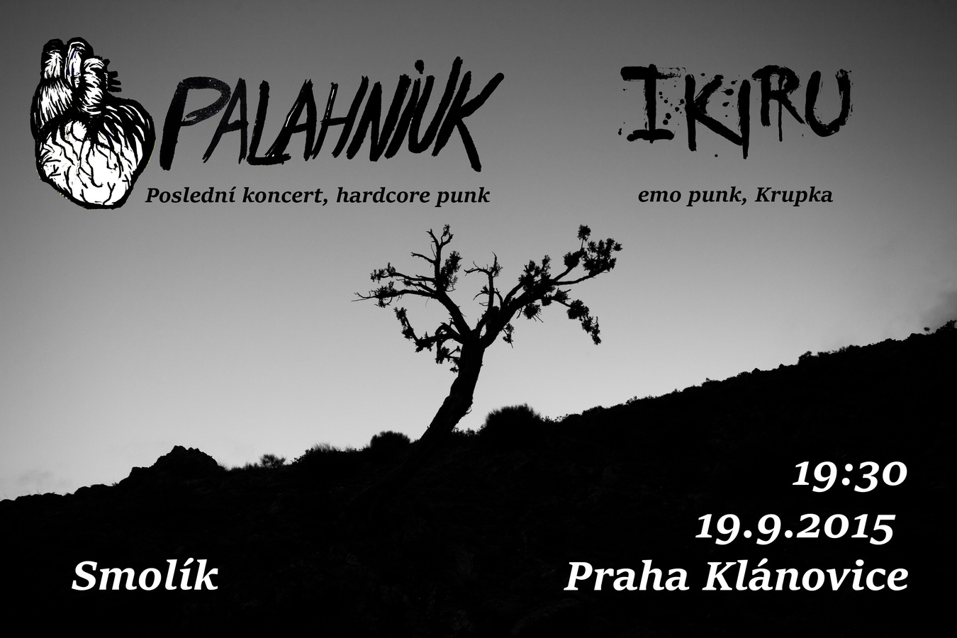 Posledni možnost vydět PALAHNIUK ktery končí se svou karierou a společnost jim bede dělat skupina IKIRU z krupky ktery maj vydanou čerstvou nahravku takže koukejte dorazit