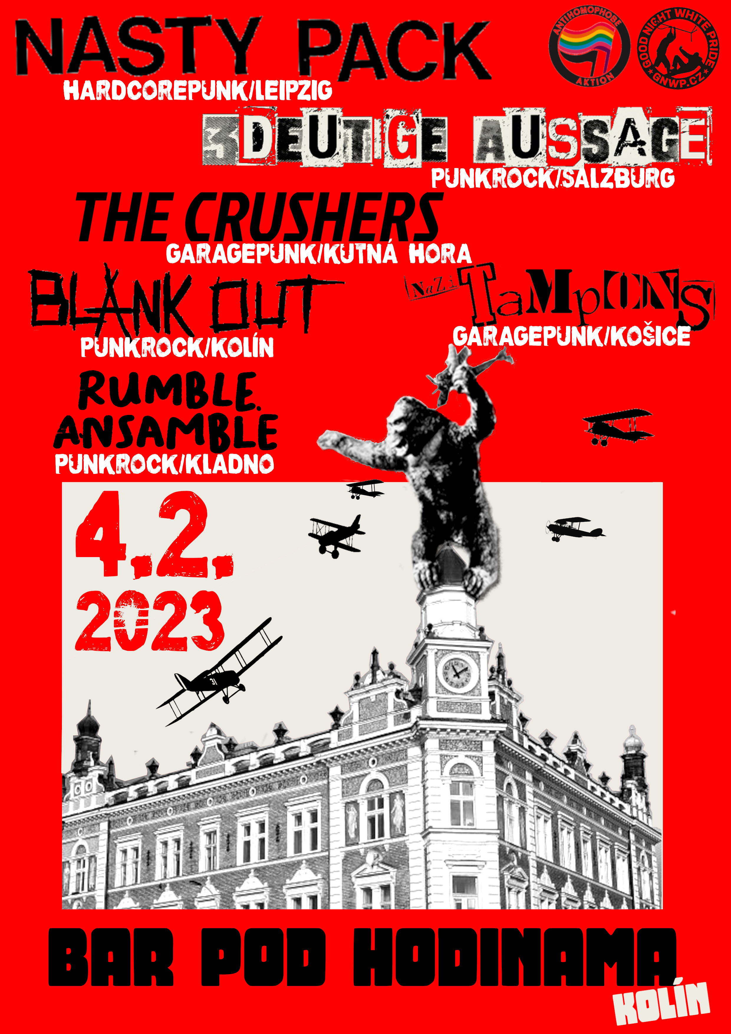 Nasty Pack (hardcore punk Leipzig), 3Deutige Aussage (punk rock Salzburg), The Crushers (garage punk Kutná Hora), Blank Out (punk rock Kolín), Nazi Tampons (garage punk Košice), Rumble Ansamble (punk rock Kladno)