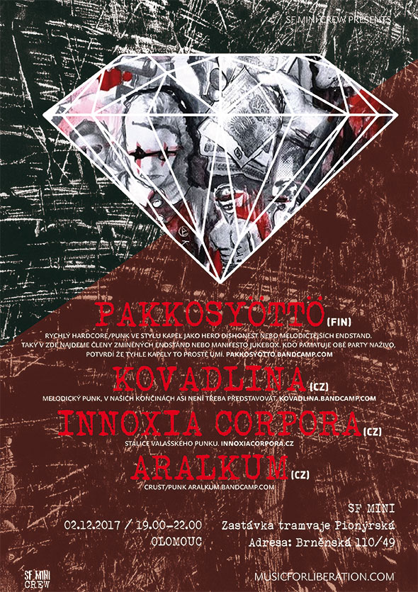 Pakkosyöttö - rychlý hardcore/punk ve stylu kapel jako Hero Dishonest nebo melodičtějších Endstand. Taky v zde najdeme členy zmíněných Endstand nebo Manifesto Jukebox. Kdo pamatuje obě party naživo, potvrdí že tyhle kapely to prostě umí. https://pakkosyotto.bandcamp.com/ Kovadlina - melodický punk, v našich končinách asi není třeba představovat. https://kovadlina.bandcamp.com/ Innoxia Corpora - stálice Valašského punku. http://www.innoxiacorpora.cz/