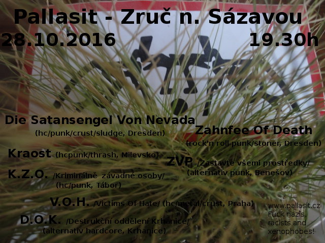Die Satansengel Von Nevada (hc/punk/crust/sludge, Dresden) https://diesatansengelvonnevada1.bandcamp.com/ Zahnfee Of Death (rock´n roll punk/stoner, Dresden) https://zahnfeeofdeath.bandcamp.com