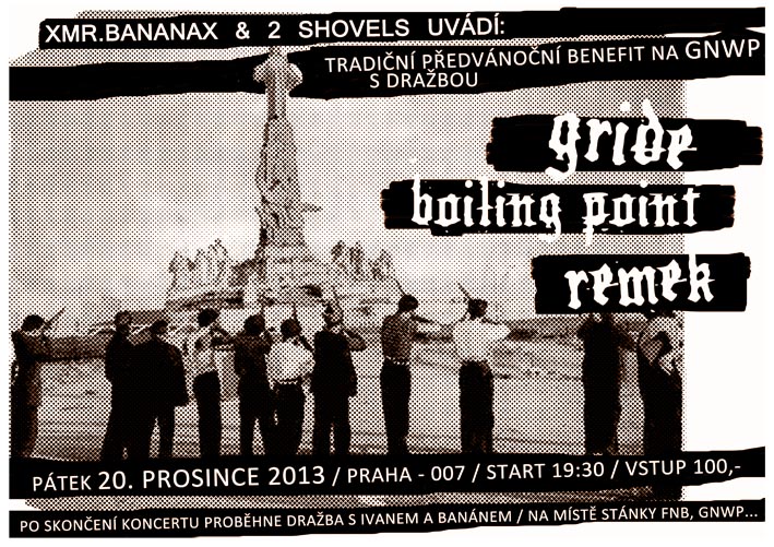 Na tradiční pražský benefit pro GNWP zve tahle video pozvánka. Koncert proběhne v klubu 007 za účasti GRIDE + BOILING POINT + REMEK. Po skončení koncertu nás čeká klasická dražba s Banánem a Ivanem.