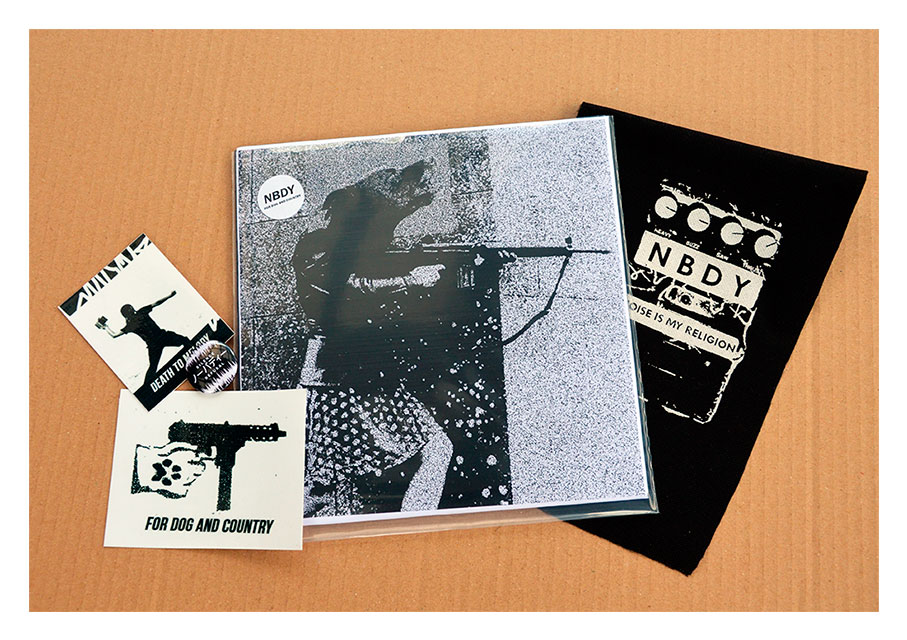 Po třech letech je tady novej vinyl od NBDY, tetokrát solovka, žádná kolaborace, žádná limit edice na kazetě, ale poctivá černá placka v nákladu 130 ks. Vychází jako poslední titul na Dog Lovers Records. Dva tracky cut up harsh noise apokalypsoidního noisu, který v tracku A uctívá Loukanikose, alias Riot Doga, kterej válčil v Řecku při protestech a nedávno umřel, NBDY a Blondie mu vzdávají čest v songu For Dog And Country, strana B je totální worship hluku a NBDY spojil sílu s Mistrem Kazehito Seki, kterej má na svých mužných bedrech vokální party a kdo ho viděl na pár shows tady na jeho mini tour, tak ví, že je mistrem hlasivek a vydává na nejprestižnějších DIY labelech (Oxen Records, OOO Sound ...) . Track se jmenuje Earplug Is Murder/Noise is Our Religion. Pro nejrychlejší je připravená limit edice s double obalem a minizinem, extra insertem a pro ty pomalejší edice s jedním obalem, ale taky s 12 stránkovým minizinem/bookletem. Vše DIY as fuck, jak je u Dog Lovers Records zvykem. Poslouchej tady mrnbdy.bandcamp.com a objednávej na emailu : dby@dogloversrecords.net nebo samuel.records@seznam.cz.