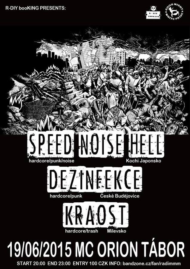 19.06.2015 MC Orion Tábor - SPEED!! NOISE!! HELL!! (hc/punk/trash, Japonsko) +DEZINFEKCE (hc/punk, Č. Budějovice) + KRAOST (trash/hc, Milevsko)
