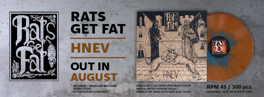 Slovenská parta RATS GET FAT dává k poslechu svoje nové album Hněv. Fyzicky vyjde na barevném vinylu s ručně tištěném obalu v nákladu 300ks. Prvně seženeš na FFud festě.