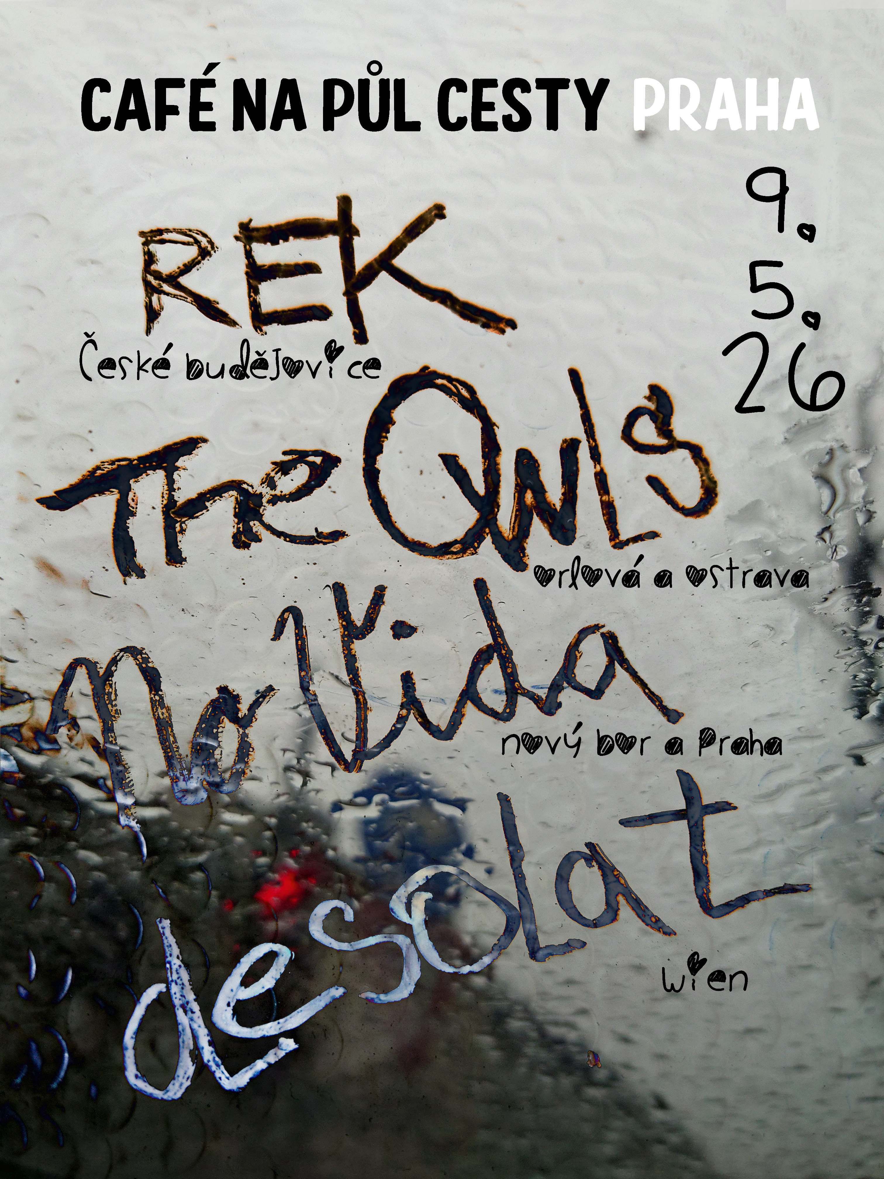REK (ČB; sokol a cíkál, noise rock a cokoli v jejich podání) desolat (Wien, hardcore, noiserock, bahno & many more) No Vida (Novoborsko & Praha, noise rock do uší i do srdce) The Owls (Orlová & Ostrava, black, hardcore, noise, crust, doom, nálada a paráda)