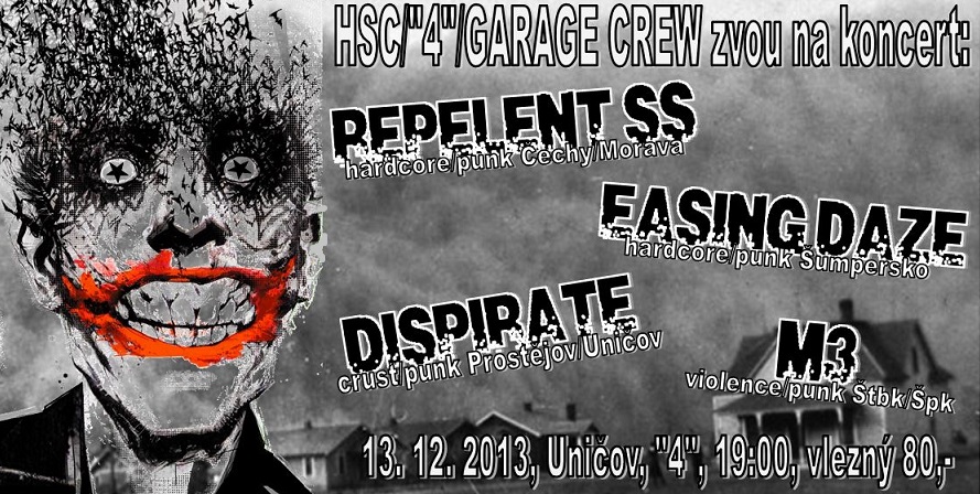 REPELENT SS - nová kapela lidí, kteří za sebou mají působení nebo působí v kapelách Mindlock, Gospel Of the Future, Kevorkian, Flowers For Whores, Dussander, Proletáři všech zemí, Tummo, Quentin Tarantino, Mother, Tomáš Palucha. Rychlý hardcore kanadské školy s crustovým nádechem pro fans Left For Dead, The Swärm, Acrid !!! http://repelentss.bandcamp.com/