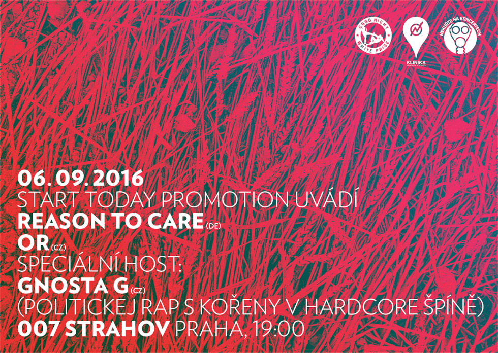 Narychlo domluvenej koncert, kterej je jasnym důkazem otřepanýho tvrzení, že pod tlakem vznikaj ty nejlepší věci. Reason To Care jsme dělali už několikrát, několikrát jsme na nich byli a pořád nemáme dost. Hardcore, kterej začíná myšlenkou, ne secvičenym breakdownem. Odkaz na kapely, který nemusely sázet podladěný riffy, aby byly dostatečně tvrdý. I po téměř deseti letech to má pořád ten stejnej tlak, s jakym se kluci odrazili ode dna. Stejnou jiskru v očích, zaťatý zuby a zápal pro věc.