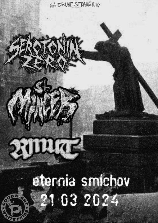 St. Mincer (CZ) - grindcore/mincecore, domácí hnilobné komando, které Ti přichází zamotat vnitřnosti a udělat z nich ozdobný věnec na dveře. Nelítostná řež, která kosí všechno živé ve svém dosahu a způsobí Ti (nejen) ušní krvácení. Aktuálně v top formě s novou kazetou.
