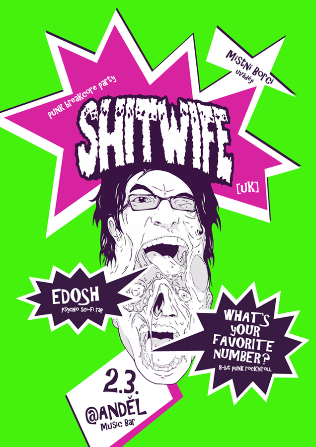 Wayne Adams a Henri Grimes jsou určitě kamarádi do deště, ale kdo zná jejich předchozí kapely/projekty, tak by nikdy neřek, že se sejdou i hudebně. A ještě k tomu způsobí ve svém rodném Londýně takovej povyk, když se vydaj ještě né moc zmapovanou cestou, objeví v ní taneční potenciál a hravě uspokojí jak alternativnějšího tak d’n’b poslouchače. A kdeže se vzali? Wayne je známý především z breakcore diskošky Ladyscraper a Henri je bubeníkem pro mnohé z nás kultovních a dnes už bohužel uspaných Shield Your Eyes. Těžko říct kam jejich společný SHITWIFE zařadit. Je to metal-tronica, punk-house nebo třebá breakcore-d’n’b? A víš co, radši si udělej obrázek sám z jejich živáků na youtube, kde sou evidentně buď všichni sjetý, nebo je to vážně tak dobrý. Na kontě mají jedno LP Big Lad, ze kterýho srší tolik energie, kdy název otvíráku High Octane Party Banger jen lehce naznačuje co asi čekat když se Shitwife rozhodne zesrat zrovna váš klub. Jo a kluci moc nemaj rádi podium, takže se připrav na to, že si na ně budeš moct sáhnout, spadnout jim do bicích, nebo pokroutit čudlíky!