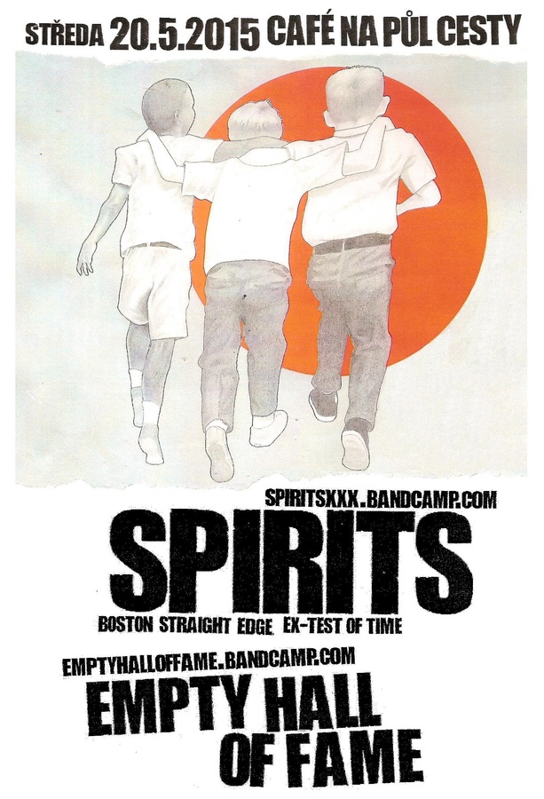 SPIRITS nejsou tak úplně nová kapela. mohli jste je vidět na Fluffu a pražským Pre-FLuffu coby Test Of Time. Krátce po tomhle turné se přejmenovali na Spirits, ale kromě jména se toho moc nezměnilo. pořád se jedná o rychlej straight edge hardcore a pokud máš rád Minor Threat, Youth Of Today, Uniform Choice nebo Chain Of Strength , tak si nenech ujít! po delší době kapela podobnýho ražení v Praze.