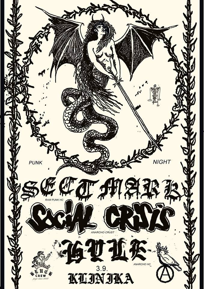 Social Crisis // Parta brousí crust metal v té nejlepší podobě! Mysli na Skitsystem. Taky jsem se nechal slyšet, že se parta podílela na protestech v Bělověžském pralese. Za což totální respekt!!!