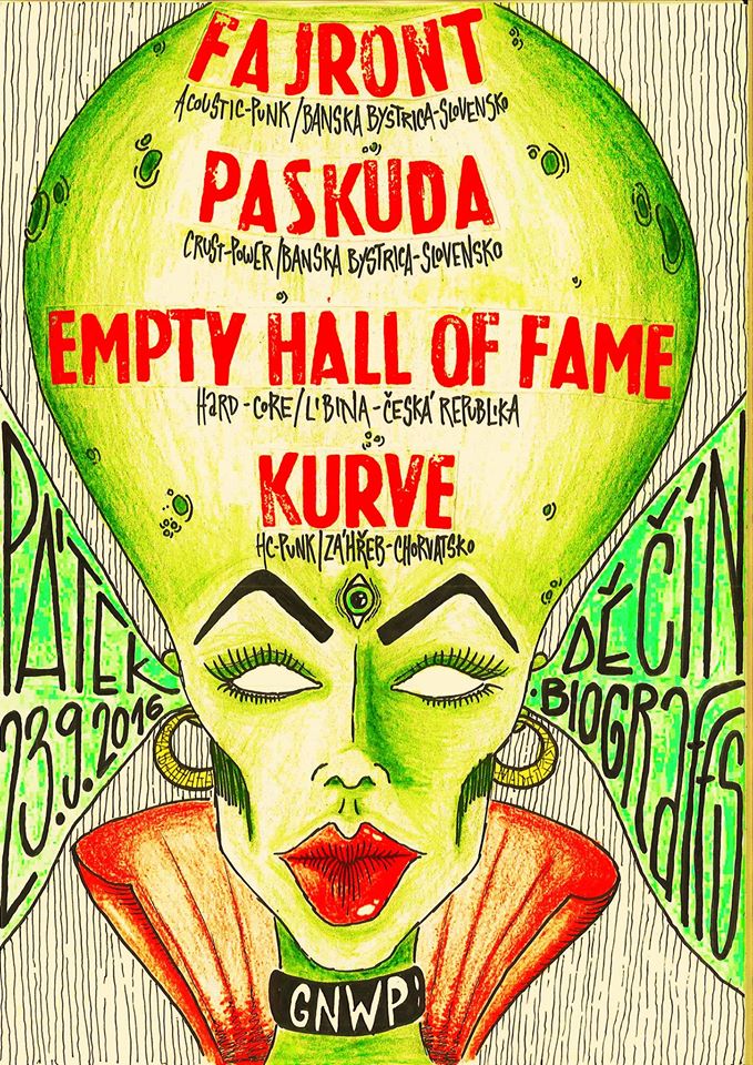 tofužel Emty Hall Of Fame nemůžou na tuhle žánrově rozmanitou taškařici dorazit :( moc nás to mrzí.. na plagu je ale necháme, byl hotovej dřív, než jsme se to dozvěděli a neb je tvořen postaru technikou "namaluj-vystřihni-nalep", nebudem se v tom už šťourat.. třeba ale do té doby najdem za EHOF nějakou náhradu. ale i kdyby to bylo "jen" o třech výše zmíněnejch bandách, bude to stát za to :)