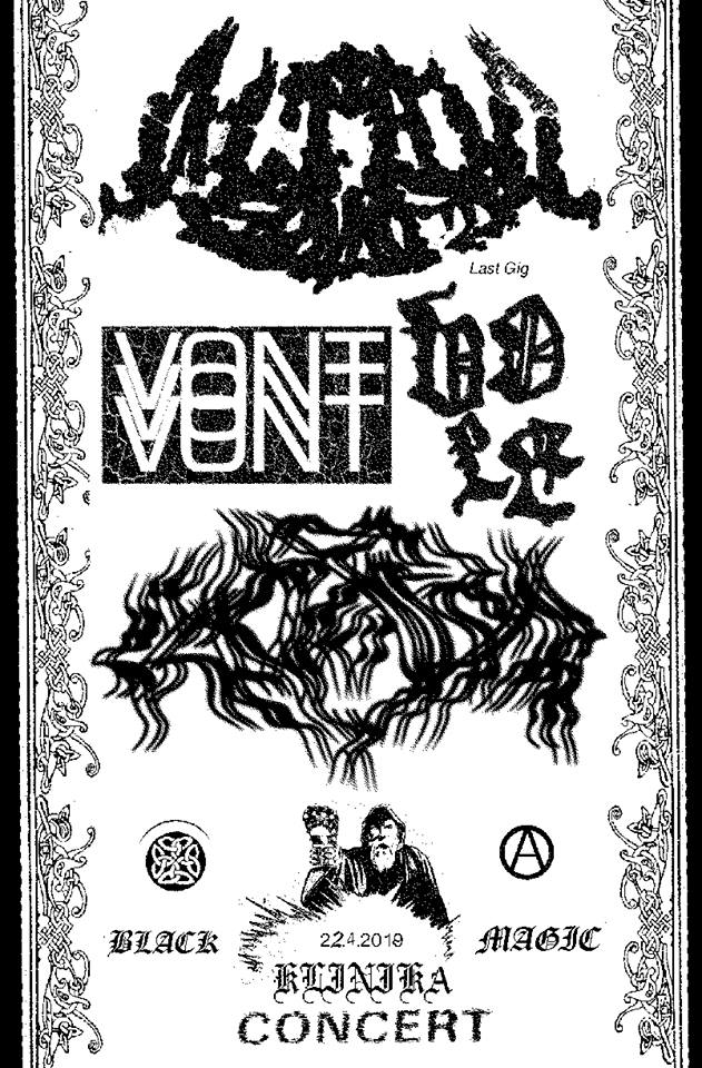Kapela Smuteční Slavnost si vás dovoluje pozvat na její poslední pražský koncert na Klinice spolu s přízněnými kapelami V0NT, Lezok a Vole, které v kontextu lokální scény snad není třeba představovat.