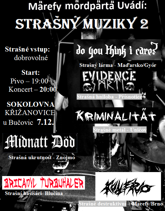Do  you think I care?(Maďarsko), Kullervo(Brno/Marefy), Evidence smrti(Přísnotice), Midnatt dod(Znojmo), Kriminalitat(Uničov) a Bricanyl Turbuhaler(Blučina).
