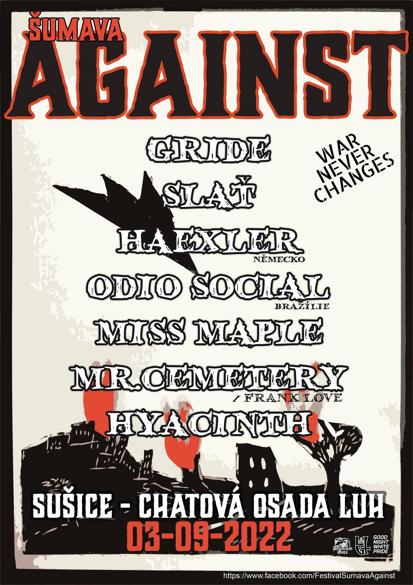 03-09-2022 Chatová osada LUH Sušice, 34201 areál otevřen od 15:30 GRIDE, SLAŤ, HAEXLER /DE, ODIO SOCIAL /BRA, Miss Marple, Mr.CEMETERY/FRANK LOVE, HYACINTH