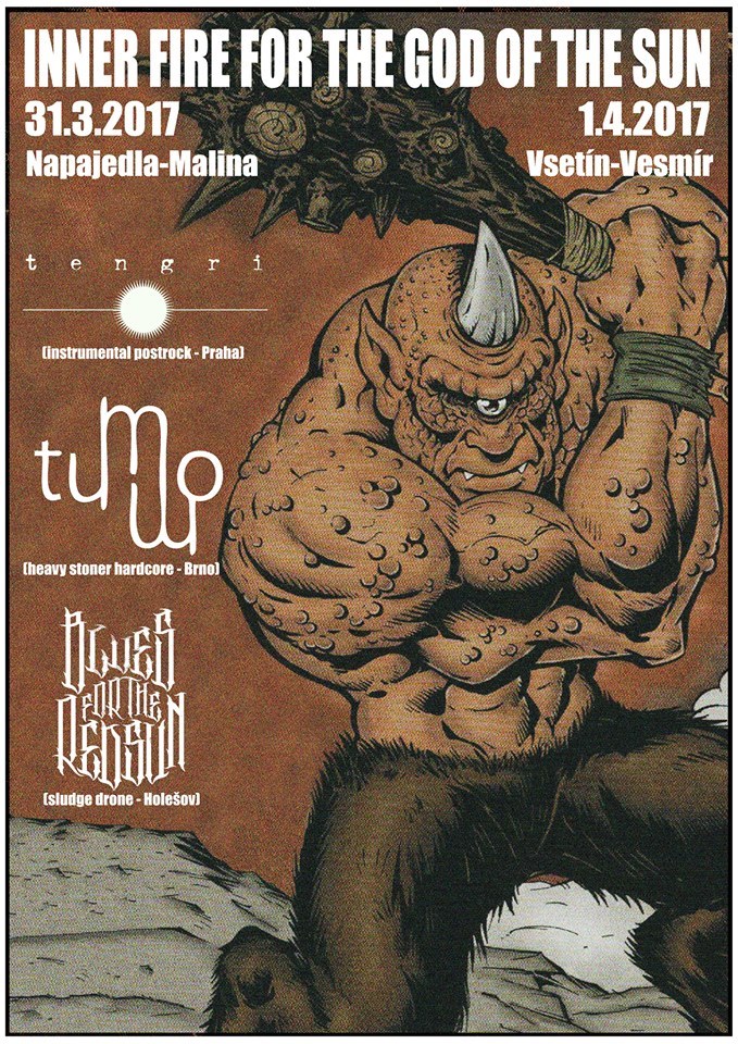 Tengri (atmosphericinstrumental post rock - Praha) monketengri.bandcamp.com ...faktorem, kterým se TENGRI odlišují od drtivé většiny (i zahraniční produkce), je užití houslí, které obstarává Sašo. Jeho party jsou ve výrazu TENGRI plnohodnotným nástrojem, kdy se tóny houslí objevují v poměru k ostatním nástrojům více než méně a neslouží jen jako dekorační prvek. Housle zcela jasně evokují jejich folklórní podstatu, což se tak nějak u tohoto nástroje dá předpokládat, a drží se v klidnějších vodách...(Coornelus,fobiazine.net) Tummo (heavystoner hardcore - Brno) tummo.bandcamp.com/ ...hudební kořeny TUMMÖ nejsou jen ve výše zmíněných kapelách, ale sahají o hodně dál. Ať už ke starému švédskému death metalu nebo třeba k BLACK SABBATH či EYEHATEGOD. Je to mix temného hardcore, pomalého slugde, stoner rocku a punkové intenzity, kdy se valivé střední tempo rázem změní ve svižnější pasáž okořeněnou třeba kytarovou vyhrávkou nebo sólem. A tomu všemu vévodí záhrobně znějící naléhavý řev...(Burry, abysszine.com) Blues ForTheRedsun (sludgedrone - Holešov/Petržalka) bluesfortheredsun.bandcamp.com ...jinak na těžký bahno bych měl taky tip z killed by brno, nahrávka zatim není a hráli poslendí, osobně sem měl už tězce pod kůží, ale stejne si vybauju, že mě to fakt zaujalo, tak kdybyste to někde viděli na plakátu...(Sud, marastmusic.com)