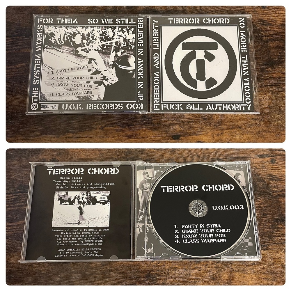 Osaka crusties dali o sobě vědět poměrně novou punk kapelou TERROR CHORD s prvky elektroniky, dříve působící v kapele Terminal, aktuálně s jejich první nahrávkou na CD, kde najdeš 4 skladby s angažovanými texty, vyšlo na Urban Guerrilla Kills Records ve 300 kusech, jak sami tvrdí inspirací jsou Active Minds, Antisect, Crass, Conflict a názvem od Extreme Noise Terror. Členové jsou v Japonsku zapojeni, pomáhají na podpoře chudým lidem v boji proti chudobě, to se cení. Jejich kotouč se dá sehnat přímo u kapely nebo v distribuci. Ukázku dema můžeš poslechnout na odkazu, i tohle je lehce šílená hudba.