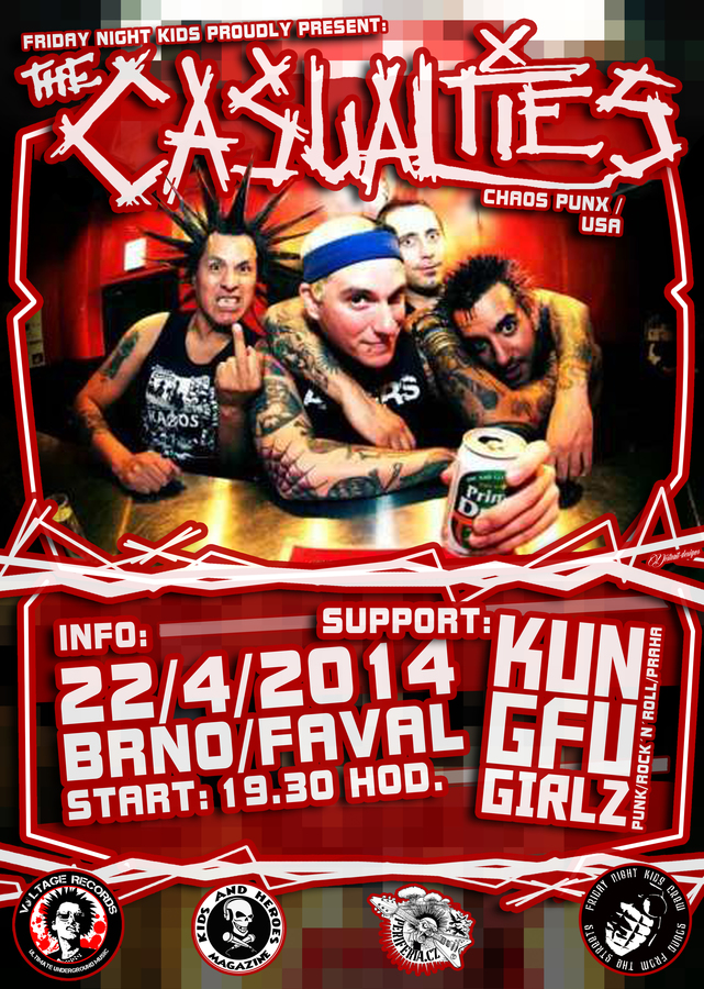 Předprodej: 260, - VOLTAGE: přes e-mail: info@voltage-shop.com (do poznámky piště: "Casualties v Brne") + poštovné