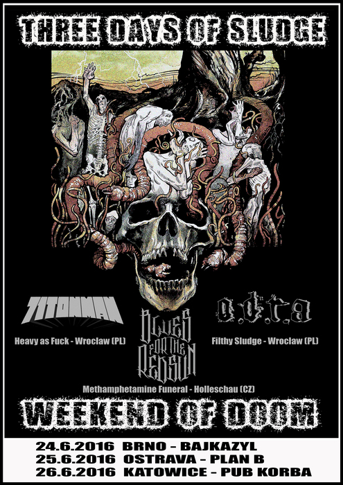 Koncem června tento špinavý rok (24. – 26.), se chystá víkendové miniturné tří těžkotonážních kapel z polské Wroclavi a moravského Holešova. Pokud holduješ zmaru a pohrdáš rychlostí v hudbě, určitě to příjdi poslechnout.