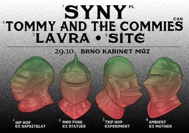 Syny jsou další projekt Roberta Piernikowskeho (známého z Napszyklat) a producenta 1988 (Etamski). Sami tvrdí, že dělají hip hop bez přívlastků, jakkoliv jejich hudbu recenzenti nejčastěji popisují pomocí různých škatulek jako “avantgardní” nebo “experimentální”. Svůj svět nechávají v plout v minulost a tak ke slovu se dostávají zaprášené bicí automaty, analogové syntezátory a VHS kazety se stokrát ohraným videoklipem. Syrové beaty jsou rovnocenným partnerem surreálních textů a neúprosné flow. Na svém kontě mají debutovou desku Orient a do Brna se vrací s aktuální deskou Sen.