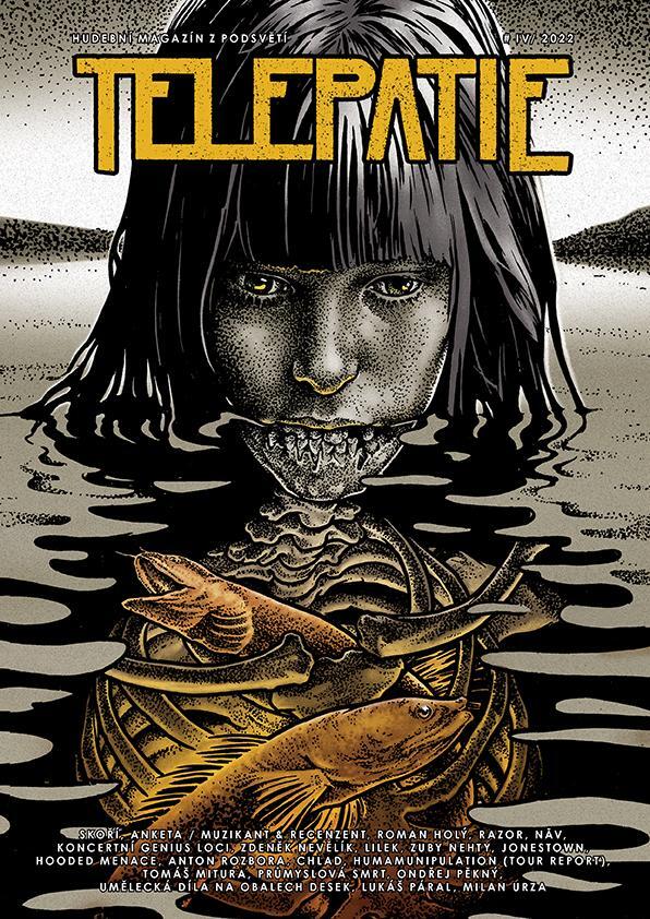 Po roce jsme zpět s novým číslem, které na 162 stranách přináší převážně rozhovory. Ty jsou z valné části zaměřené na osobnosti – Skoří (EXORCIZPHOBIA), Roman Holý (J.A.R., MONKEY BUSINESS, …), Tomáš Mitura (VOLE, SNĚŤ), Lilek (Stoned To Death), Zdeněk Nevělík (ET MORIEMUR), Anton Rozbora (GOATCRAFT, RADIATION, …), Milan Urza (PRVNÍ HOŘE, …), Lukáš Páral (Doomentia Records) a Ondřej Pěkný (VELLOCET ROLL, VOLUPTAS). Zrod své čerstvé desky komentují Johan a Mičl z PRŮMYSLOVÉ SMRTI, s kompletní sestavou NĀV se vypravíme do světa black metalu, zatímco s CHLAD se ponoříme do hlubin tradičního doom metalu. Po mnoha letech činnosti vydali HC/punkoví JONESTOWN svojí první velkou desku – jasný důvod k rozhovoru. Loni vyšla silná nahrávka i HOODED MENACE, o které se rozvyprávěl Lasse Pyykkö. S kanadskými veterány speed/thrash metalu – RAZOR – zavzpomínáme na osmdesátá léta, ale dojde i na současnost. Barvitý a vtipně pojatý tour report z putování kapel CONTRASTIC a PERFECITIZEN napsal Ossie (L'inphantile collective). Zajímavými místy nás v textu Koncertní genius loci provede Ondřej Helar. V článku s podtitulem „Nejlepší punk byl stejně DYBBUK“ si podrobně projdeme historii kapel PLYN, DYBBUK a ZUBY NEHTY. V zinu nechybí ani dvě ankety. První je na téma muzikant/recenzent, zatímco ta druhá se zaobírá uměleckými díly na obalech desek. A jedno umělecké dílo se tradičně nachází i na titulní straně Telepatie – a opět se o něj postaral Andy. Seženeš u telepatiezine@seznam.cz.