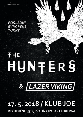 Všechno dobré musí jednou skončit. THE HUNTERS mají před sebou poslední evropské turné. Poslední vystoupení u nás, poslední šance je vidět a slyšet naživo, poslední šance být u toho! Po třetí a naposled u nás. Kdo viděl THE HUNTERS v akci ví, že Vás čeká zážitek, na který se nezapomíná. Proslulá energická show bez zbytečných kudrlinek. Čistá dávka Rock ´n´ rollu okořeněná originálním přístupem, který umí jen THE HUNTERS! THE HUNTERS ušli pořádný kus cesty. Kapelu založili v roce 2005. Za 13 let stihli vydat split album s Miracles a 3 samostané alba. Poprvé na sebe THE HUNTERS upozornili albem Promises. Především skladbou Van Party Forever, která se stala „hymnou“ a která zazněla na každé show. Poté přišlo druhé album – Art Electric, které zbořilo veškerá očekávání. Jestli se říká, že druhé album nebude nikdy jako to první, THE HUNTERS jsou výjimkou číslo jedna. Co skladba, to hit. Art Electric nemá žádné slabiny i díky tomu, že ho produkoval Matt Allison (Annie Lennox, Alkaline Trio, Rise Against). Aby toho nebylo málo, THE HUNTERS letos vydali své poslední 4 skladbové album Black Eyes. Jak asi bude znít první skladba tohoto alba – Ok Bye naživo? THE HUNTERS doprovodí pražský svéráz první kategorie – LAZER VIKING. LAZER VIKING je pomník rock’n’rollovýmu neumětelství, přehnaný glamový pompéznosti a absolutnímu kýči současnýho punku, kterej má tu drzost se ještě brát vážně. Zvuk do posledního tónu vykradenej z oaklandský young oldies a bubblegum queer-garage scény, všechno na čtyři a texty vyzdvihující krásu lidský průměrnosti v její největší špíně. No, máme se na co těšit! KLIPOVNA: The Hunters – Ok Bye https://www.youtube.com/watch?v=682-RQ_zwys Lazer Viking – A Real Keeper https://www.youtube.com/watch?v=rXyA02Ej_P0 LINKOVNA: The Hunters https://thehunters.bandcamp.com/album/art-electric https://sexysloth.bandcamp.com/album/black-eyes Lazer Viking https://lazerviking.bandcamp.com