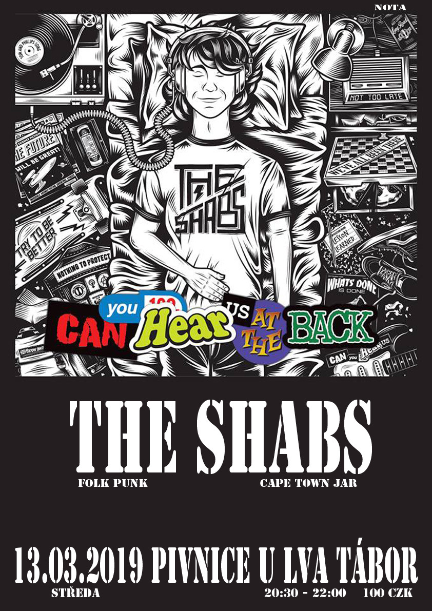 THE SHABS (folk punk, Kapské město JAR) The Shabs se opět vracejí do Tábora. The Shabs neúnavně koncertují po Evropě se svým energickým folk punkem, kdy při vystoupení nemůže zůstat nikdo v klidu. Minulý rok to dokázali opět i na festivalu Mighty sounds, ale věřím, že klubové resp. lvovské prostředí přidá koncertu na energii a originalitě.