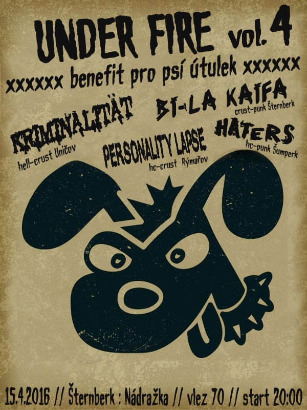 Výtěžek z tohoto benefitu bude přidán k výnosu z minulé akce UNDER FIRE vol.3 (částka cca 3000,-) , a bude použit k nákupu krmiva pro psí útulek v Olomouci.