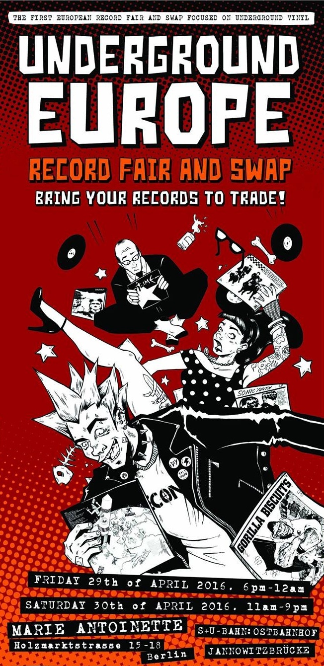 Pro všechny maniaky vinylových desek se nabízí, uskuteční pátek, sobota 29. a 30. Dubna v Berlíně druhý ročník UNDERGROUND EUROPE 2016 burzy, výměny a prodej desek. Nabídka pro distributory a vydavatele : vstup 3 Eura na den, na dva dny 4 Eura, s sebou si každý distributor může vzít maximálně 3 lidi, tímto sestavit tým lidí. Tento rok bude 6 kapel, 3 Djs, jedna umělecká výstava, 1 knižní prezentace, veganské jídlo, bar... Spousta věcí a hromady hudby až 30 000 nahrávek. Pro více info piště Keulemu z Rodel records. Pro ty kteří by chtěli setrvat na 1. Máje bude na ulici festival (zdarma) My fest.