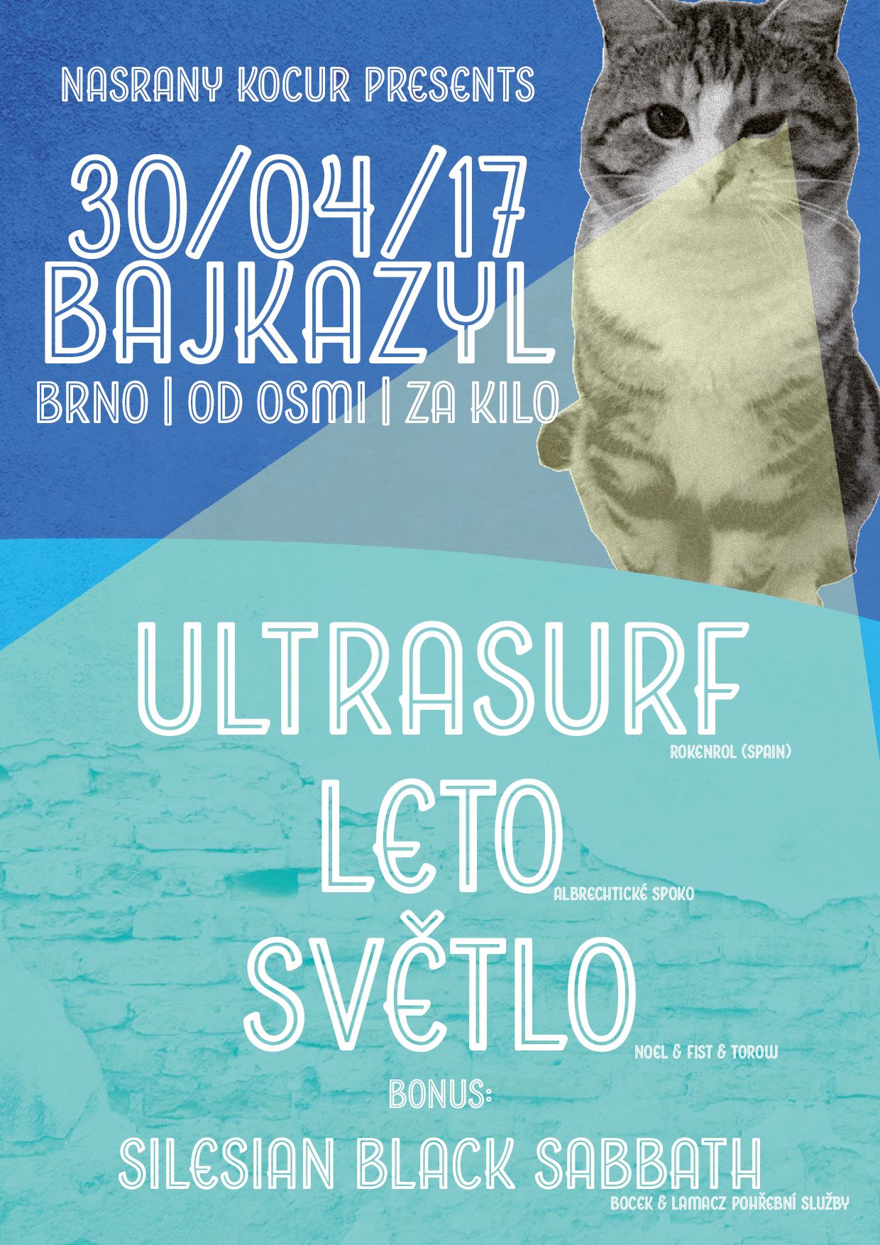 Ultrasurf Španělská trojka přiváží lehkonohý garážový rokenrol velmi, hm, svěžího střihu, ale zároveň okořeněný zdravotně nezávadnou punkovou nasraností. Venku mají nové EP "Alimentado el Polvo", jehož kus si můžete poslechnout tady: https://losfabulososultrasurf.bandcamp.com/album/alimentando-el-polvo-ep-preview Leto Palma a Indoš mají novou desku, někteří z nás ji už slyšeli a musíme říct, že se z toho regulérně poserete! Je nápaditější, textově vymakanější, kytarově nadupanější. Deska ještě na světlo světa nevylezla, ale novou muziku budou dávat i na koncertě, takže pičo to neprováhej nebo ti někdo nabluje do spacáku. http://www.silver-rocket.org/kapely/leto Světlo Křínex, Fist a Torow mají pro změnu novou desku už venku (stahuj na www.mamamrdamaso.cz), do Brna, města svého debutu (jestli si to dobře pamatujeme) se vrací po delší odmlce jako vždycky útočit na vaše mamy. Kocakion za milion! https://kapelasvetlo.wordpress.com/grupa/ Black Sabbath jr. Překvapení nakonec, pro znalé asi žádná záhada modrého škorpiona, tak jako jsou Planety vlastně Priessnitz (těžko pičo!) tak jsou tihle kluci vlastně Black Sabbath (leda ve snu). http://www.silver-rocket.org/kapely/laundered-syrup