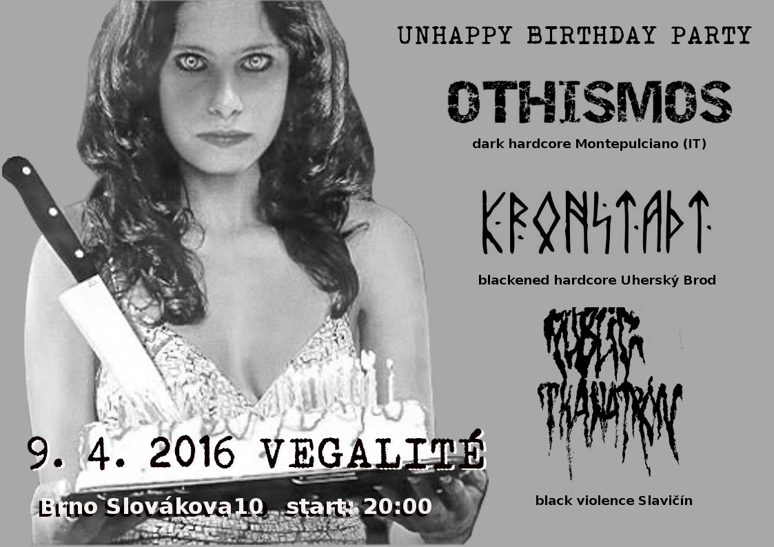 Koncert skrznaskrz temných a depresivních kapel spojený s oslavou jednoho neveselého životního výročí.