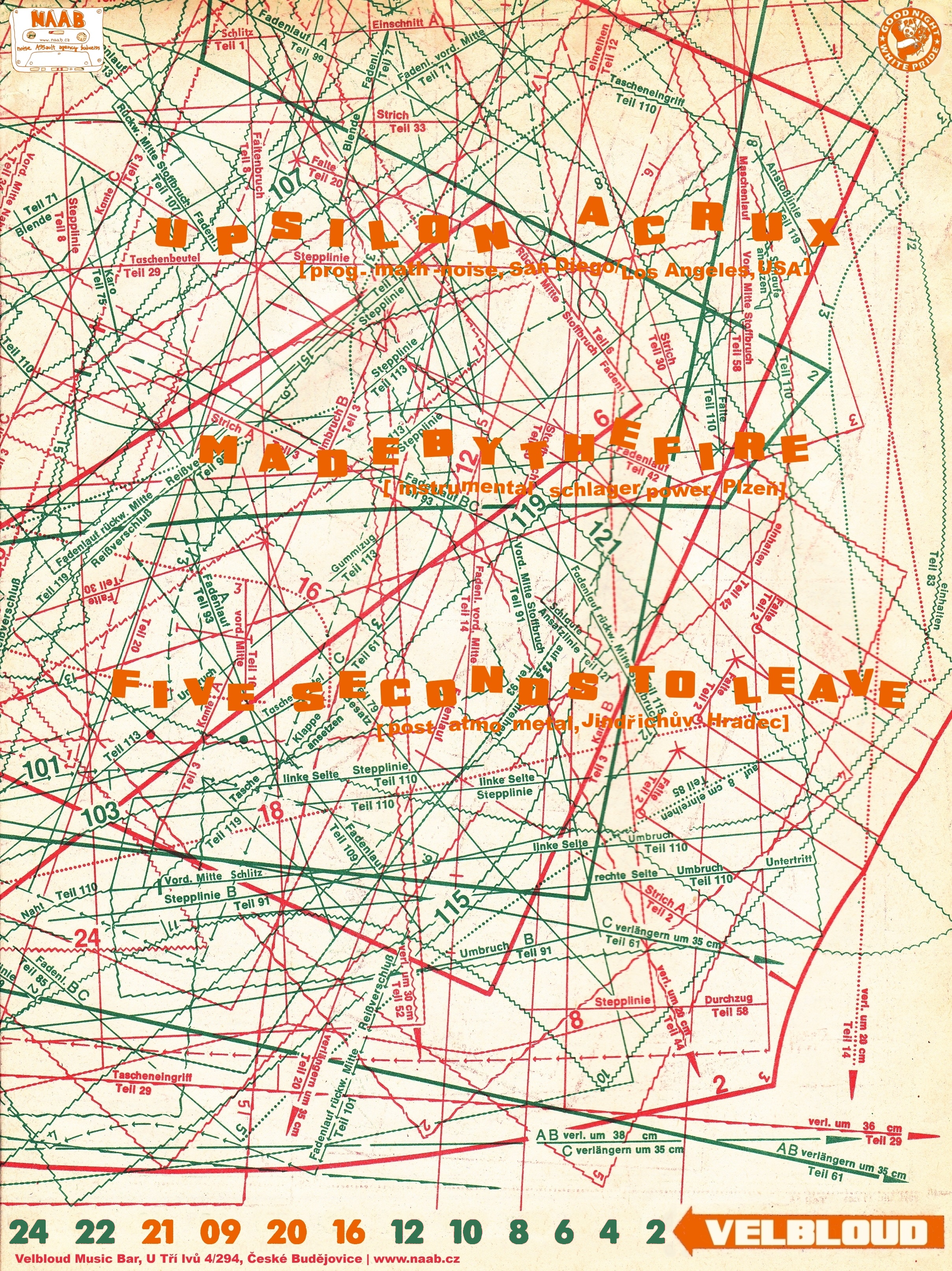 nenápadná kapela z plzně, která už hraje snad i víc než deset let takový hezky nalámaný instrumentální prog-rock. takže žádnej zpěv, neustále se měnící libě znějící melodie, který ústí v pořádný šupec, to chceš. v budějcích už hooodně dlouho nebyli a my se těšíme!