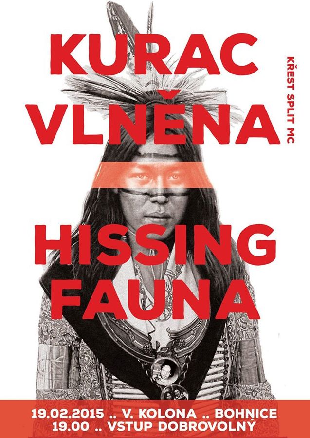 V Brně je čtvrť, která se jmenuje Černovice. Kromě toho, že tam stojí legendární nonstop Charbulka, kam jsem chodil liskat vždycky ve 4 ráno po šichtě v jedné nejmenované kurýrní firmě, je na téže ulici krásný areál psychiatrické léčebny. Kdo v Brně nikdy neskončil po proliskané noci v Černovicích, aspoň o tom někdy uvažoval nebo se strachem (či napjatým očekáváním), mluvil. Chlapcům, kteří jsou docela hezcí a chytří, ale občas pijou, se to tentokrát tak trochu povede v analogickém prostředí bohnické psychiatrické léčebny. Kurac, jinak slovy kapelníka Ondřeje "jsmedebilní", pokřtí v V. koloně spolu s Vlněnou split kazetu, kterou si tam taky budete muset koupit, aby bylo na hajcování piveček. Chlapci z Kurac se určitě celí nedočkavostí třesou, neboť když se pokoušeli na podobné místo dostat naposledy, byli vykázáni s tím, že nejsou lůžka (ve skutečnosti ještě nikdo nevynaleznul antidebilika). Vlněně, zdá se, by genius loci tohoto neutěšeného místa mohl sednout taky – obzvlášť, pokud si na hlavu zase natáhnou pytle od brambor, nemuseli by se dostat domů jen tak. Tuhle dvojku ještě doplní Hissing Fauna. Důležitá věc: startuje se fakt v 19:00, aby se to všechno stihlo. Vstupné je dobrovolné.