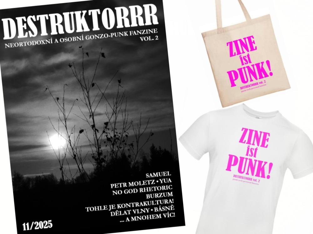 "Hodnejch fanzinů už bylo myslim dost!" Vychází DESTRUKTORRR fanzine VOLUME 2!!! Ve fanzinu najdete: Rozhovor s Petrem Moletzem - šéfikem UG molochu Telepatie, rozhovor s novou dark hardcore kapelou Yua z Jihlavy, dále pak interview s brněnskými grindery No God Rhetoric, a rozhovorem čísla je pak obsáhlé povídání s Honzou Samuelem Kloučkem (fanzin Kill Your Dreams, label Samuel records, zpěvák ex-Lahar) o životě, názorech a HC/punku! Dále zine obsahuje: Šokující článek o BM fenoménu Burzum, kterýho se spousta punkerů bojí jak čert kříže a podle mě není proč, dlouhou stať s názvem Tohle je kontrakultura!, která pojednává o zinech, zinařství i další hudební fan literatuře, a článek Dělat vlny je o názorech a o nakládání s nimi! Přidej výběr 10-ti básní autora zinu s úvodem proč básně píše, a máš to z Polné doma - ale je toho tu víc! :) Destruktorrr 2 je osobním autorským gonzo-punk zinem Mičla (fanzin Útok z jámy, kazetový label Hardcore Loves All Colors records, frontman ex-Průmyslová smrt), který prožil posledních 25 let jako aktivní muzikant v undergroundu a nahlíží na svět i na scénu specifickou optikou. S nadšením sobě vlastním i s kritickým okem zároveň diskutuje s osobnostmi v rozhovorech mnohdy na velice netradiční témata, nebojí se vytáhnout kontroverzní věci, na rovinu jde s kůží na trh s vlastním názorem na scénu, lidi, ziny, události - a některé články budou pro Tebe naprostým šokem! Ale ŠOK - to je přece PUNK, nebo ne? :) K zinu vychází i mini-edice merchandise! Trika a plátěné tašky s růžovým heslem ZINE ist PUNK!, kterých bylo vytištěno jen po pár kouscích! D2 vychází jako kniha/paperback - 150 stran s krásnou přehlednou knižní sazbou s větším písmem, aby se tentokrát lépe četlo i bez brýlí! :) Náklad zinu je 200 kusů! Objednávej na: mipunk(dot)seznam.cz.