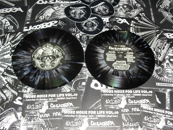 DISKOBRA - Špinavý raw d-beat crust punk z Maďarska s texty v rodném jazyce se sociálním zaměřením a ex členy HUMAN ERROR, inspirovaný švédskýma kapelama 80. Let jako MOB 47, PROTES BENGT nebo DISCARD se špetkou finského punku, připomínající zpěvem staré klasiky jako KAAOS nebo TERVEET KADET. Vlastním stylem tak trochu ojedinělá kapela, naprosté krupobití! Materiál pochází z jejich demo kazety včetně dvou písní ze splitu CD s DISPLEASE. U Aback distribuce vychází v tento čas osm jedovatých písní, na černém vinylu s bílými, mléčnými cákanci v nákladu 500 kusů s vnitřákem a obalem tištěný na tuhém papíře. Kapela se na živo představí V ČR v průběhu MORE NOISE FOR LIFE festu v říijnu. Nahrávku můžeš poslechnout na kapelovém bandcamp profilu.