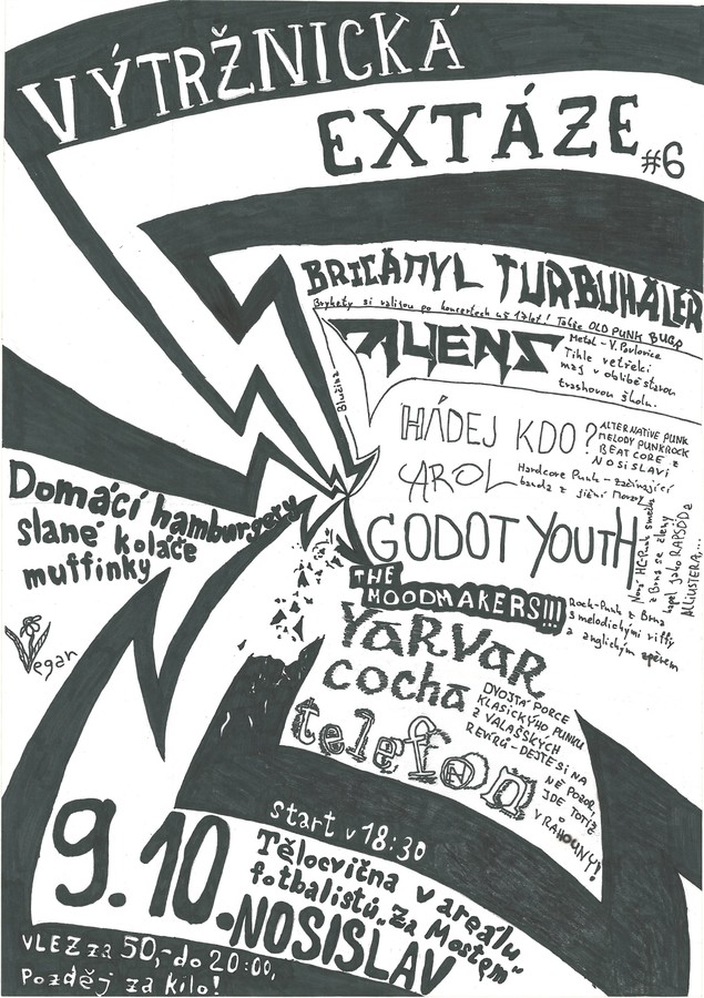 Šestý ročník Nosislavské zábavy v rytmu ratatatatata TA! letos 8 kapel za 50 kč! platí do 20:00, potom vlez za 100,- veganský jídlo, možnost úschovy batohu na baru, prespání ve spacáku, snídaně.