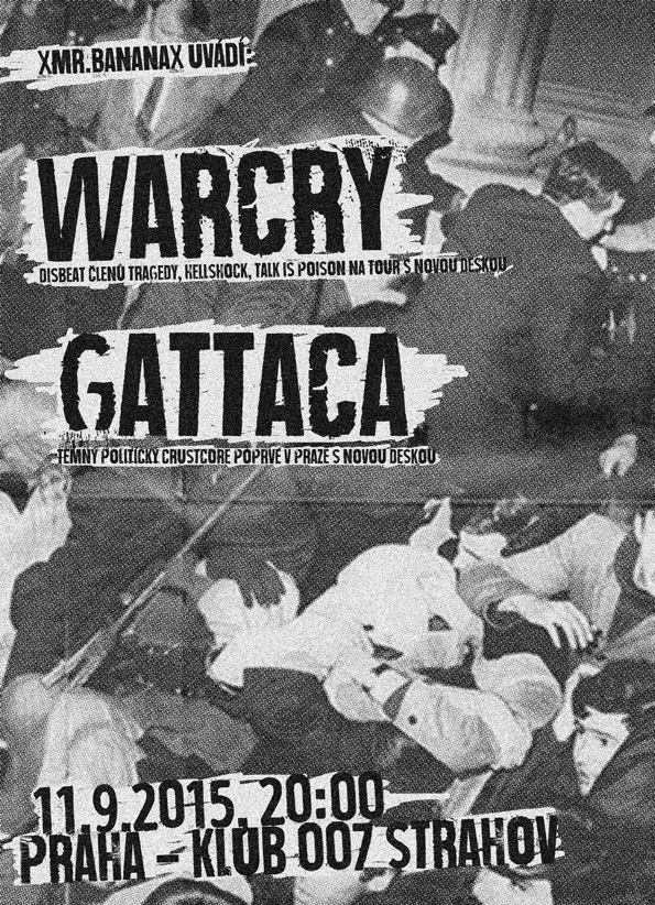 Na Sedmičku se vrací portlandští Warcry. Jejich koncert na témže místě v roce 2007 byl totálním vyhlazením všeho živého v dosahu, což jistě rádi potvrdí všichni, kdo tam byli. Členové Tragedy, Hellshock nebo Talk is Poison a jedna z nejlepších punkových baskytaristek ever už mají za sebou opravdu hodně zářezů na punkové pažbě, přesto jejich válka evidentně nekončí. Tou úplně nejnovější je totiž zbrusu nové album Savage Machinery, které si kapela podle nejlepší tradice opět vydala sama a na zhruba sedmnácti minutách vás na něm naporcuje na plátky. Oproti starší tvorbě je v něm trochu méně Motorhead a Discharge vlivu a celkově má blíže spíše k Talk is Poison nebo Deathreat, i když pořád vládne železnou disbítovou pěstí. Čěkal jsem fakt roky až se Warcry vrátí a jsem rád, že jsem se toho dožil. Večer otevře Gattaca se svým temným emotivním hard core crustem a také s novou deskou v zádech.