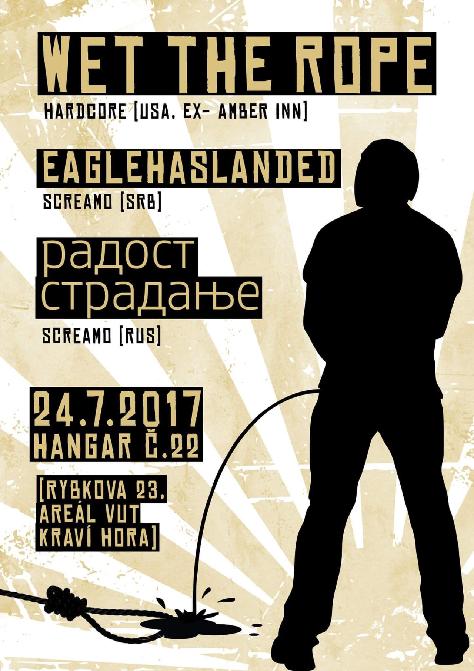 Wet the Rope je nová kapela členů Amber Inn, kultovní polit emo hardcore kapely z 90. let, která vydávala své desky na Ebullition Records. To zaprvé znamená, že tihle chlápci rozhodně ví, jak se na lopatě sedí a za druhé, že ani v roce 2017 rozhodně neobrousili hrany, spíše přesně naopak. Wet the Rope jsou totiž oproti zmíněným Amber Inn mnohem tvrdší, méně emo a naopak mnohem více hard core ve stylu dalších skvělých kapel té doby jako Downcast, Struggle nebo Born Against. Tzn. tvrdý sound, postupy oholené na kost, občas lehký odér Orchid či Guyana Punchline, ale v tomto případě vše drží na uzdě strohá rytmika, díky které je celkové vyznění opravdu hodně blízsko Struggle nebo prvním Yaphet Kotto. Tohle vše je skvěle namícháno a nakoncentrováno i na desce The Sum of Our Scars, která vyšla nedávno na Adagio 830 Records se kterou se kapela chystá na své první turné do Evropy. V jeho rámci proběhne i koncert na zkušebně v Brně a bude to palba jak v 90. letech v Kalifornii u někoho doma v obýváku. Buďte u toho! https://adagio830-records.bandcamp.com/album/the-sum-of-our-scars