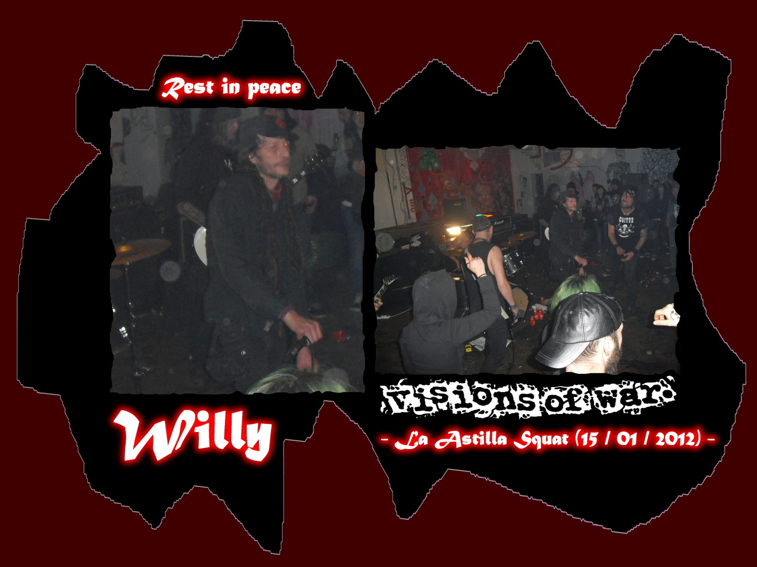 Velmi smutná zpráva. Opustila nás po dlouhé nemoci, crustpunková legenda Willy, pravým jménem Willis Nollomont - zpěvák kapel Hiatus, Skew Whiff, Visions Of War, Werly a mnoho dalších v kterých působil. Pro život Inspirativní a motivující kapely o tom není pochyb. Netřeba více slov, vzpomínky se vší úctou, osobní vyjádření na mém distro/label webu. Rest in peace - Crust and peace!