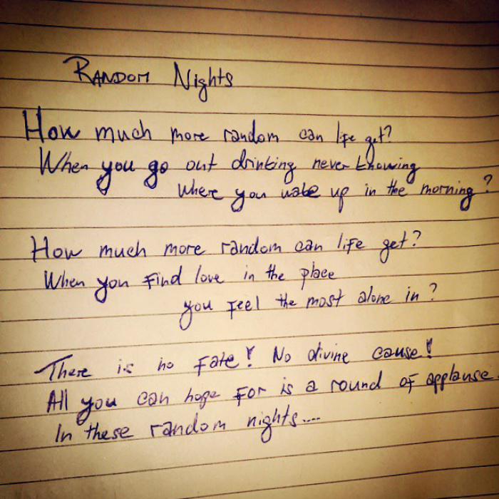 Worldhood vypouštějí písničku "Random Nights", kterou natočili v dubnu 2014 v rakouském Grazu ve STRESS studios (ve kterém nahrávají například Astpai nebo Despite Everything) Toma Zwanzgera. Jedná se o  první ukázku z chystaného alba Nerd Love. Více na worldhood.bandcamp.com.