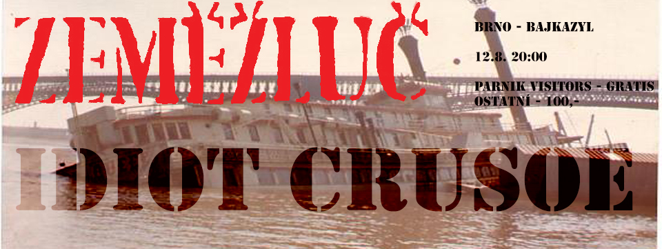 Koncert naváže tam, kde Parník skončil. Tudíž hned po Telefonu měli následovat Idiot Crusoe a Zeměžluč. Pro účastníky parníku je vlez samozřejmě gratis, pro nově příchozí, kteří na parníku nebyli lidových 100,-. Ohledně gratis pití pro zklamané duše z parníku se vše dozvíte později :)
