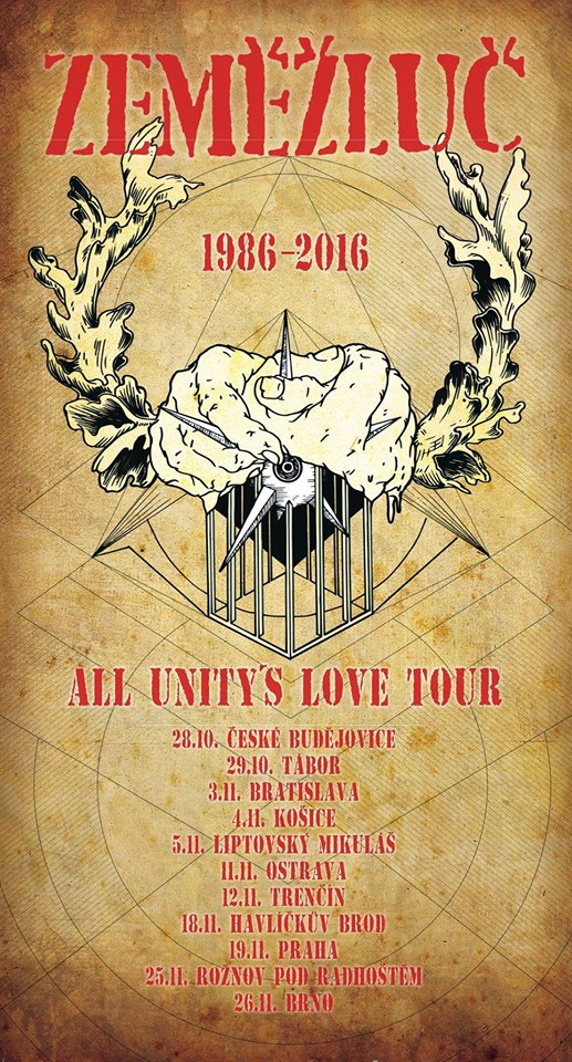 Brněnská kapela ZEMĚŽLUČ slaví letos 30 let svého fungování v punku formou podzimního turné pod názvem All Unity´s Love. Velkou část pojede v doprovodu personálně propojené party RESURGO.