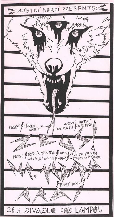 ZEUS! Made in Italy! Je basa - bicí duo zrozeno jednoho Října v roce 2010. Kope to zle. Po domácku upravený bicí a basa spolu s nakřáplým vokálem se Ti zaryje pod kůži. Kope to hodně. Jako kdyby chtěli ohlodat skálu na kost a zbíječka s dynamitem sou chudý příbuzný. Na hlukový stěny co vytvářej, by se měl normálně chtít zbrojní pas. A to se k tomu ještě kluci snaží z minima vytěžit maximum hehe. Hlavně si nemyslete, že to co hrajou je metal, punk, matyka, noise, prog a rozhodně né jazzcore či post-cokoliv! Snaží se pouze osvobodit skrz hudbu ze zaběhlých škatulek našeho konvenčního a předvídatelnýho světa. A přitom se jim asi omylem povedlo natočit dvě desky. První „Zeus!“ a druhou z roku 2013 s názvem „Opera“, na které se v jednom songu objevil i Justin Pearson známí např. z The Locust, Retox a mnoha dalších. Ten s nimi bohužel nepřijede, ale to už bychom chtěli vskutku moc žejo. Už stačí, že svoje desky vydávají u Three One G Records! Kluci jsou kromě hraní na boha součástí i dalších špagety kapel Calibro 35, Craxi, Fuzz Orchestra nebo Ronin, což už také o něčem svědčí, že?