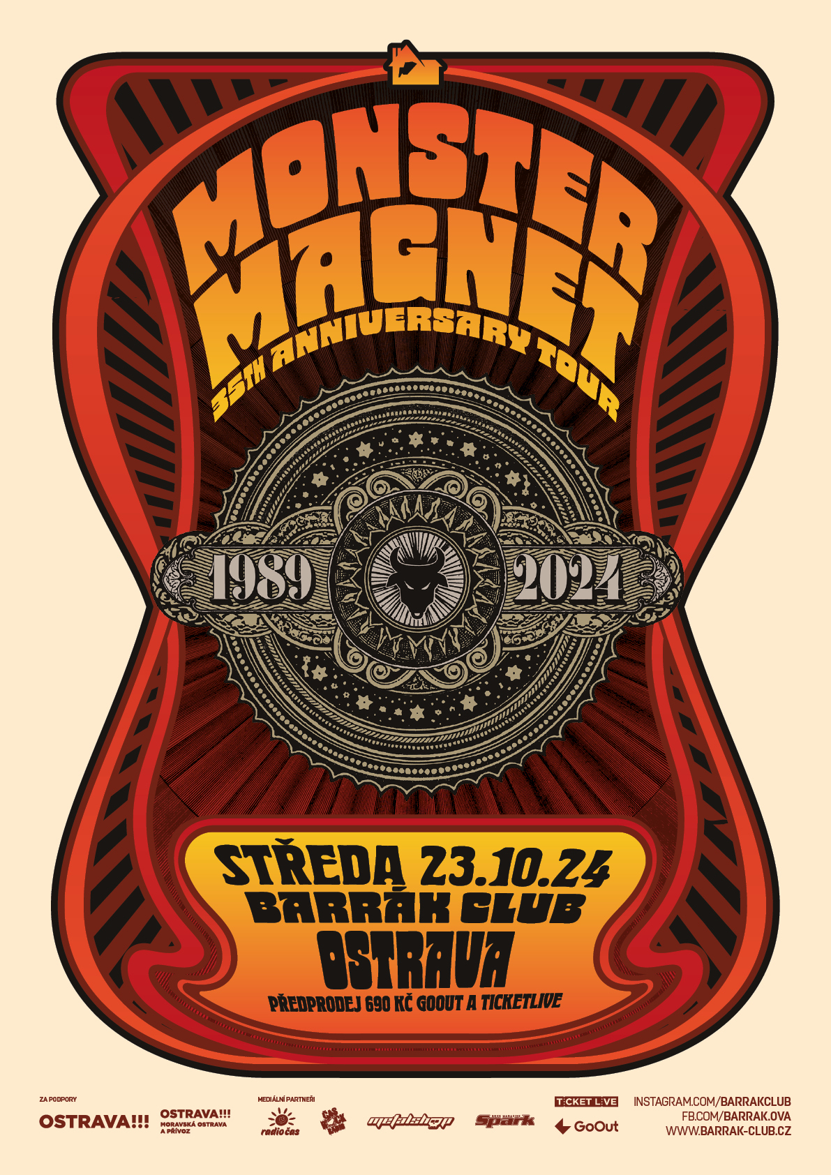 Monster Magnet – považovaní za jednu z nejkreativnějších, nejrozmanitějších a nejtvrdších rockových současných amerických kapel, jenž jsou často označováni za průkopníky stoner rocku, slaví 35 let od založení a v rámci výročního turné dorazí poprvé i do Ostravy!