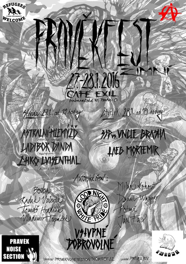 Naše každoroční lednové akce hudby, hluku a autorského čtení byly zpravidla dvoudenní, tak jsme se rozhodli dát jim nový háv a s tím i některé věci vylepšit. Navíc, když už variaci na letní festival udělal i Obscene Extreme (o komercích jako Masters of Cock ani nemluvě), tak přece nezůstaneme pozadu, no ne?:-)