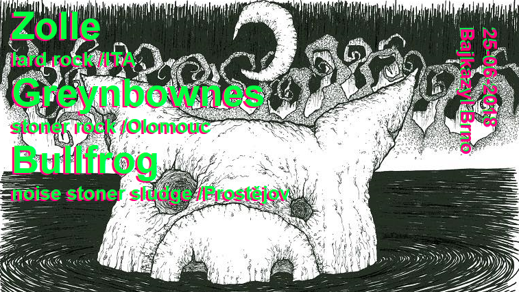 Zolle, duo Marcello (MoRkObOt) a Ste, zástupci žánru lard rock, jehož význam si najdi na Urban Dictionary, bude se ti líbit! S nimi zahrají olomoučtí Greynbownes, kteří na sebe strhávají pozornost spojením stoneru a syrového blues, a prostějovský blátivý stoner Bullfrog, jenž po čtyřech letech přijíždí s novým albem "Ressurection of the Dead Trees".