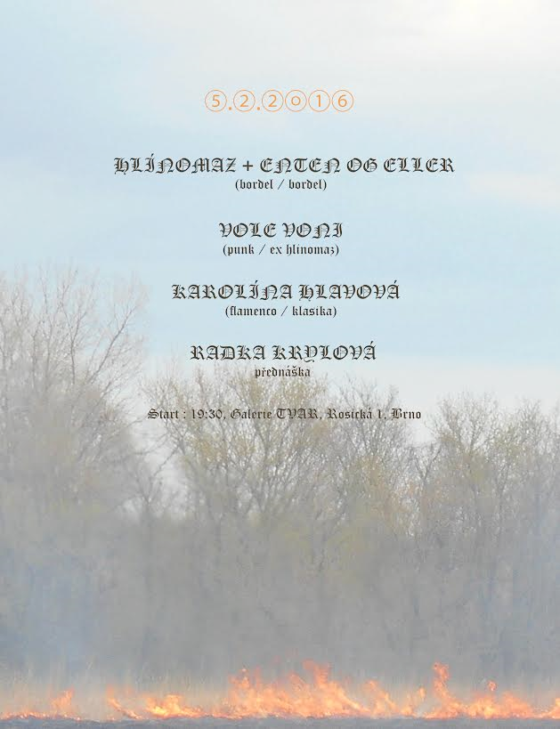 20:00 čtení textů ze splitka hlinomaz/eoe v prostoru bývalé olejárny, vyrážíme z Tvaru